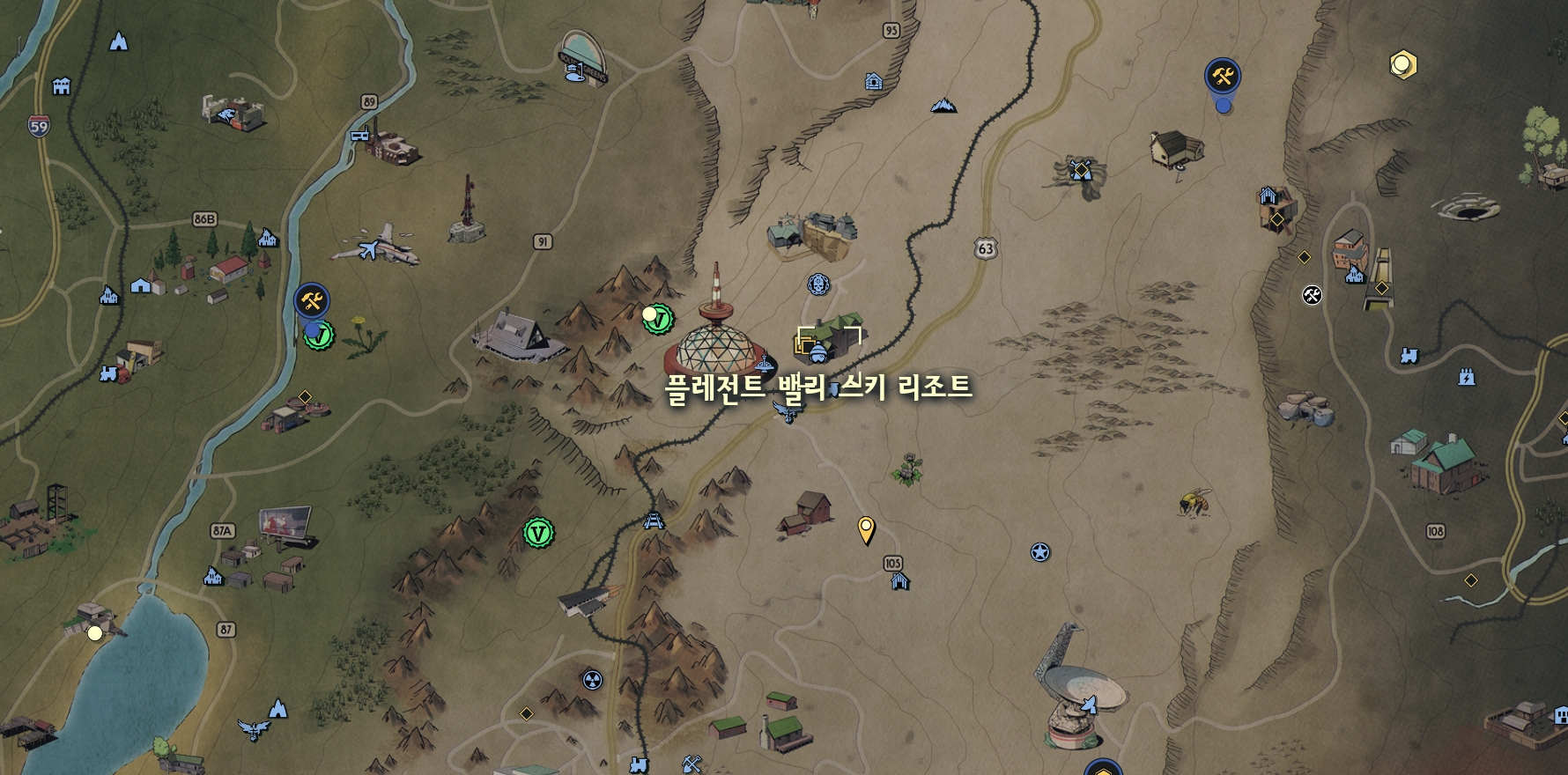 | 맵의 중앙에서 1시 방향에 위치한 "플레전트 밸리 스키 리조트"로 이동하세요. 지하로 내려가는 계단을 통해서 은닉처로 이동해주세요 |