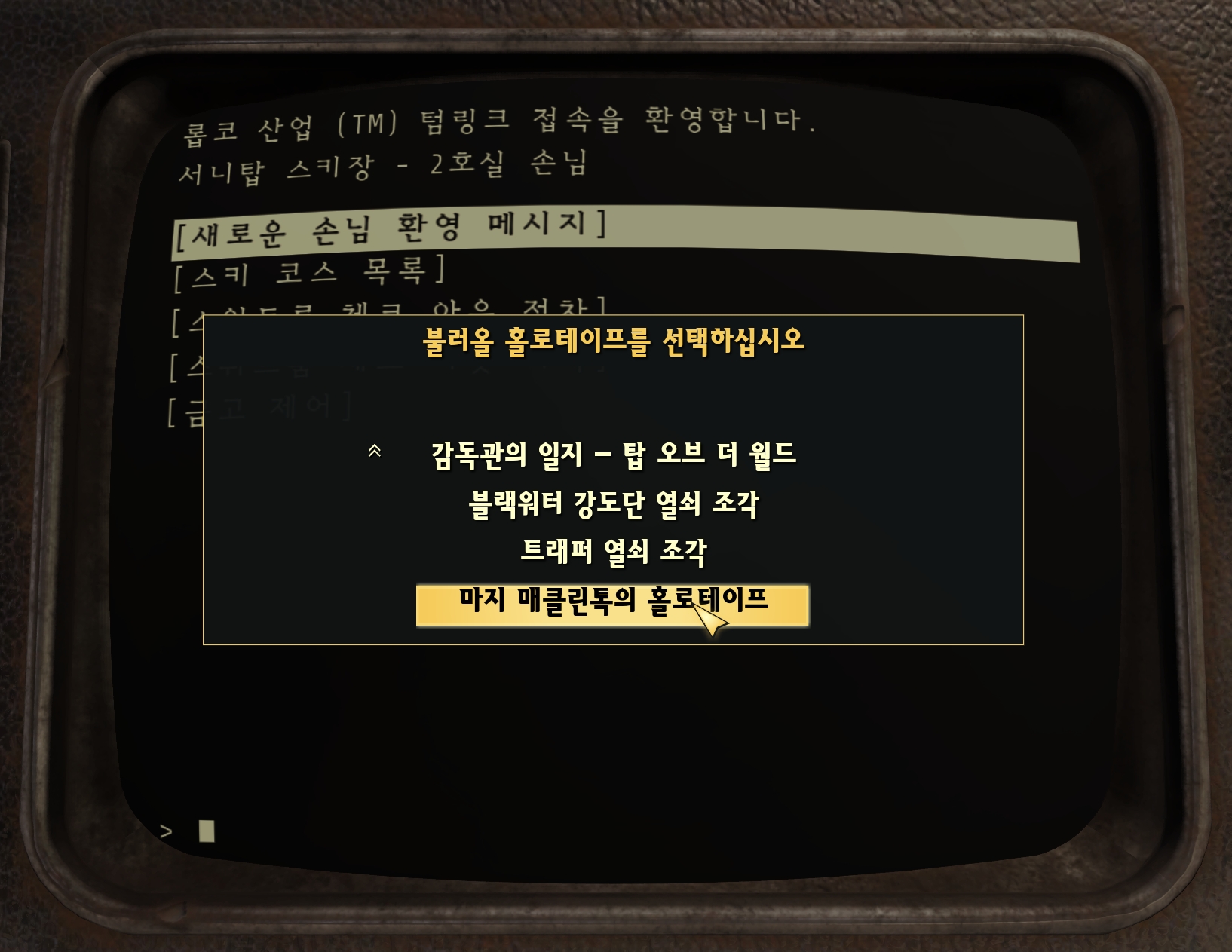 | 손님용 단말기에 접속하여 마지 매클린톡의 홀로테이프를 재생해주세요. |