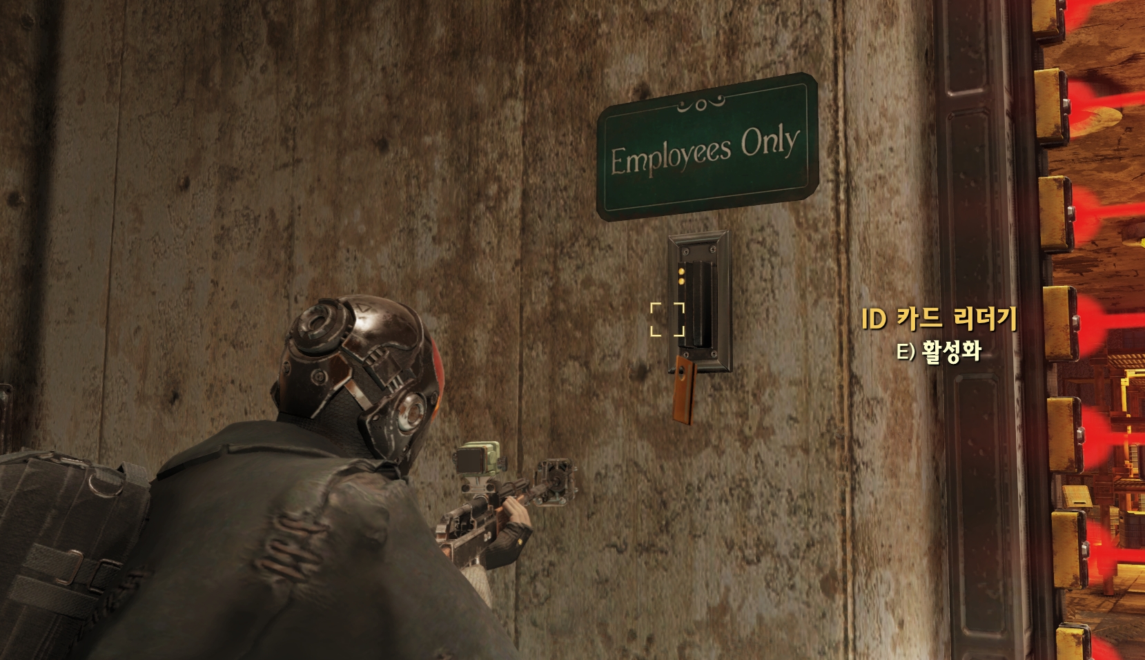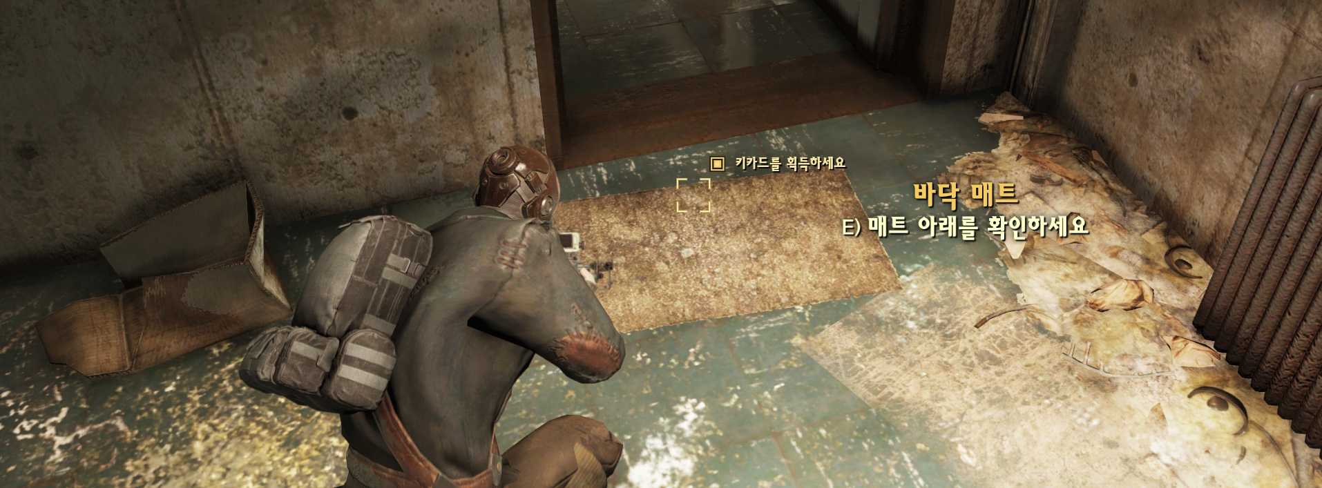 | 퀘스트 마커가 활성화된 바닥 매트를 E)키를 통하여 확인해주세요 은닉처 키카드를 통하여 ID 카드 리더기를 읽어주시고 들어가주세요. |