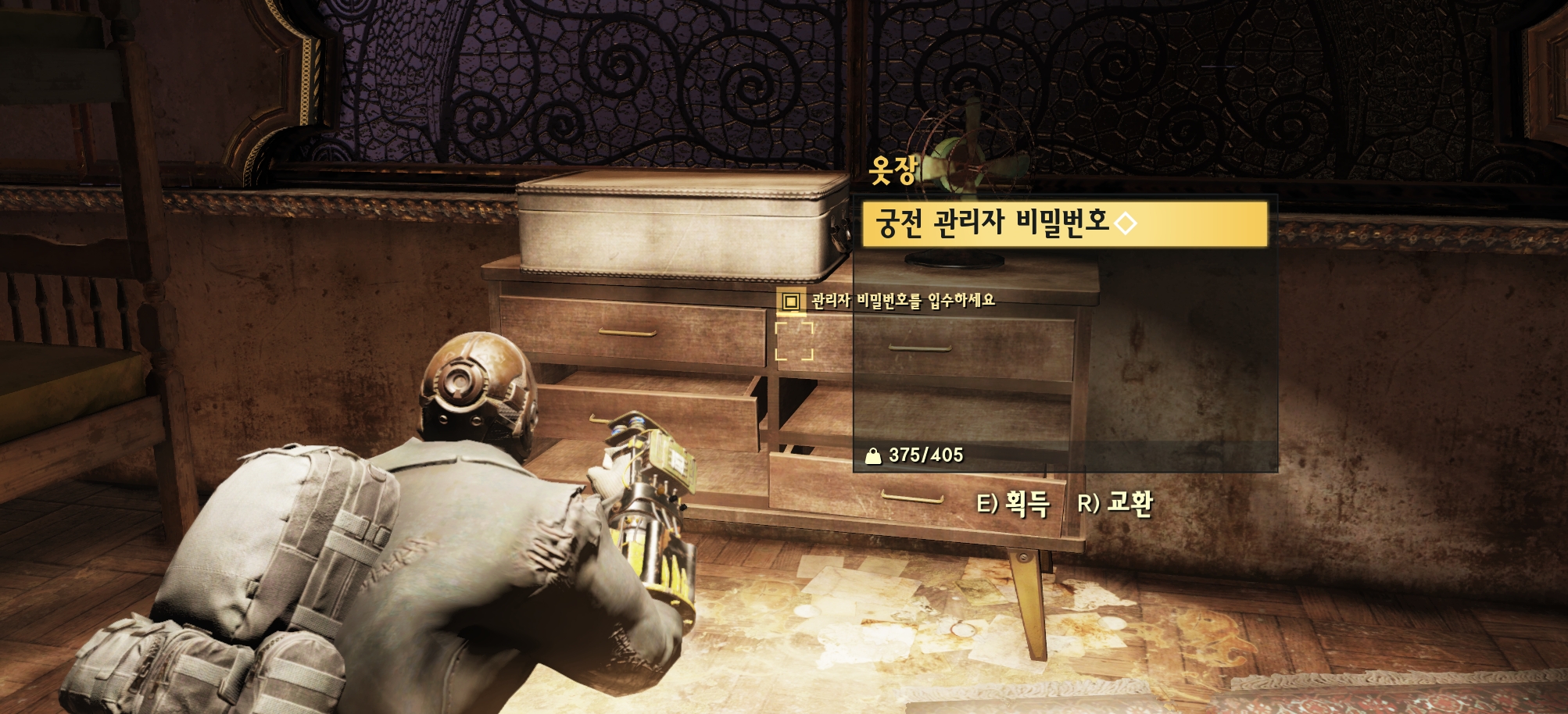 | 궁전 내부에서 궁전 관리자 비밀번호를 획득해주세요. |
