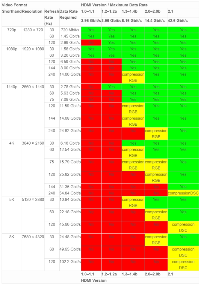 간단하게 HDMI 버전 별 지원되는 해상도와 주사율을 간단하게 보겠습니다.