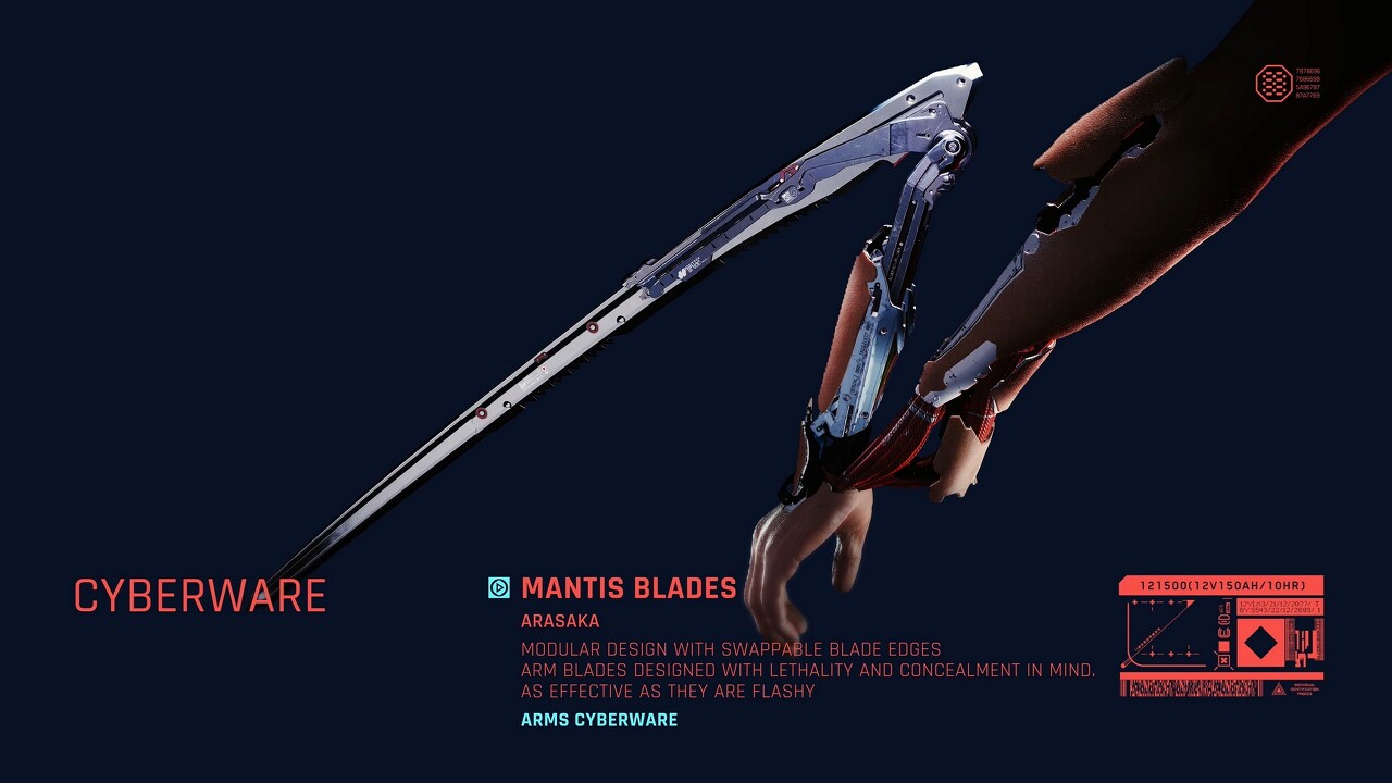 | 사이버웨어 무기 종류는 신체에 개조를 통하여 무기를 장착하는 시스템입니다. 각 회사마다 사이버웨어의 등급이 다르며, 개조까지 이뤄질 수 있기 때문에 공격력 및 특성이 다르게 설정됩니다. |