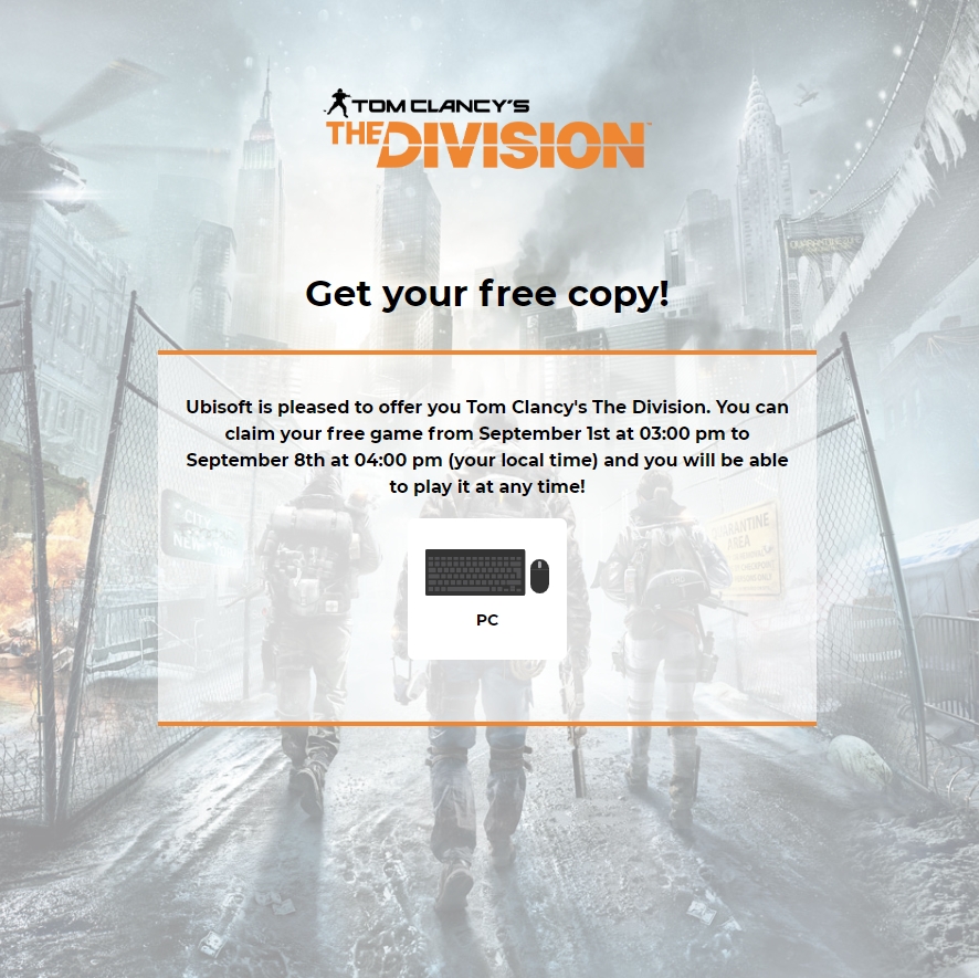 유비소프트에서 The DIVISION을 무료로 배포하고있습니다. 일정 기간만 무료로 배포중이니 빠르게 유플레이 라이브러리를 채우시기 바랍니다.