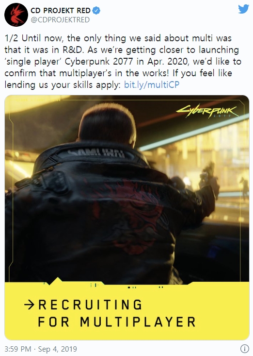 | 사이버펑크 2077은 멀티 플레이어 구성 요소 계획을 가지고 있다는 것을 CDPR을 통해 확인이 되었다. |