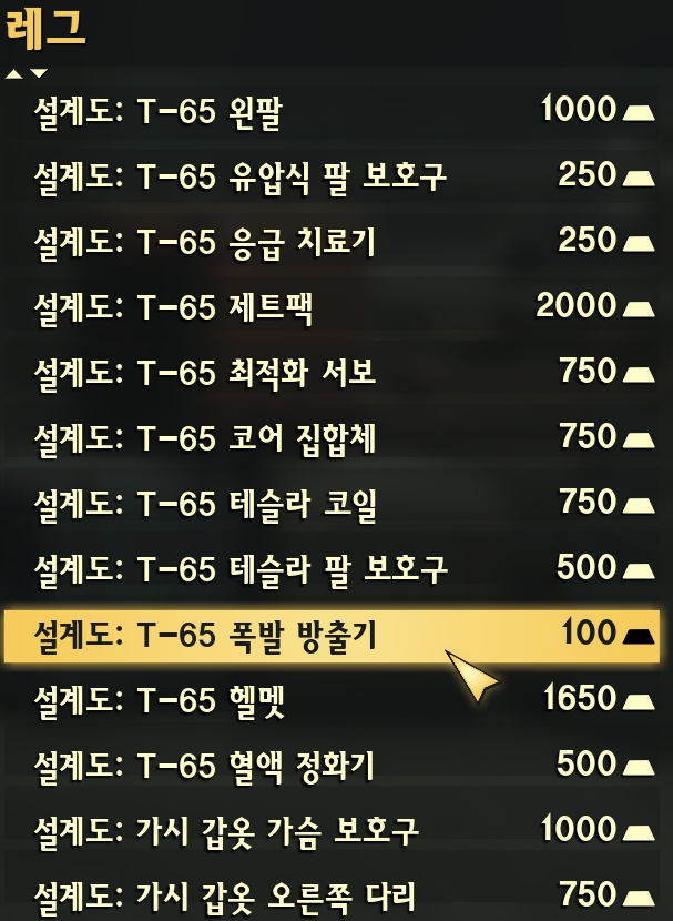 | 볼트79 퀘스트를 완료한 후 "레그"를 통하여 금괴로 구매할 수 있는 설계도가 있습니다. 금괴로 구매한 설계도 아이템을 제작할 경우 대부분 "거래 불가" 아이템이며, 최고의 성능을 보여주는 무기, 방어구 등이 존재 합니다. 꼭 국고증권을 획득하시기 바랍니다. |