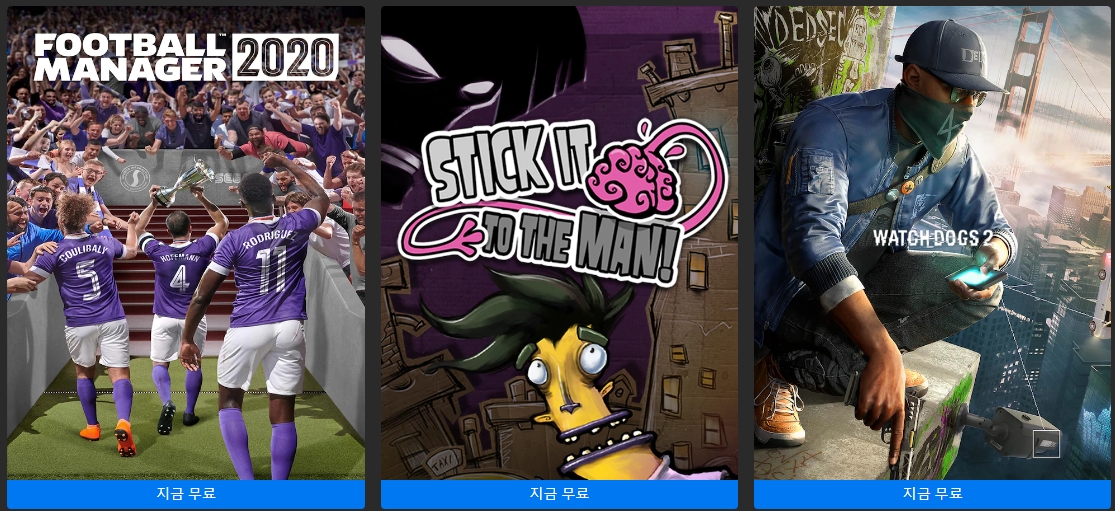 풋볼매니저2020, 스틱 인 투 더 맨, 와치독스2 무료 다운 입니다.