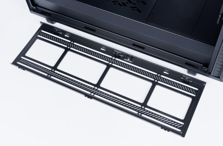 | Fractal Design Define XL의 밑면은 매쉬로 되어 있으며, 손쉽게 먼지망를 탈착하여 청소 할 수 있도록 편의성도 갖춰져있습니다. 또한 추가적인 악세사리로는 탈부착이 가능한 팬 장착 악세사리까지 있으니, PC 빌드업시 사용자의 성향에 맞게 빌드를 하시면 될 것 같습니다. |