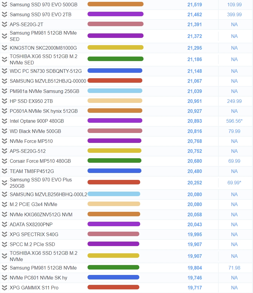 ※ 본 순위는 SSD 속도위주의 랭킹입니다. 신뢰성, 컨트롤러 등 배제된 부분입니다.