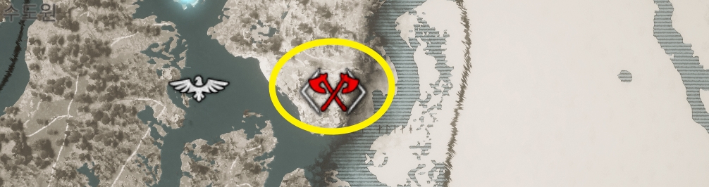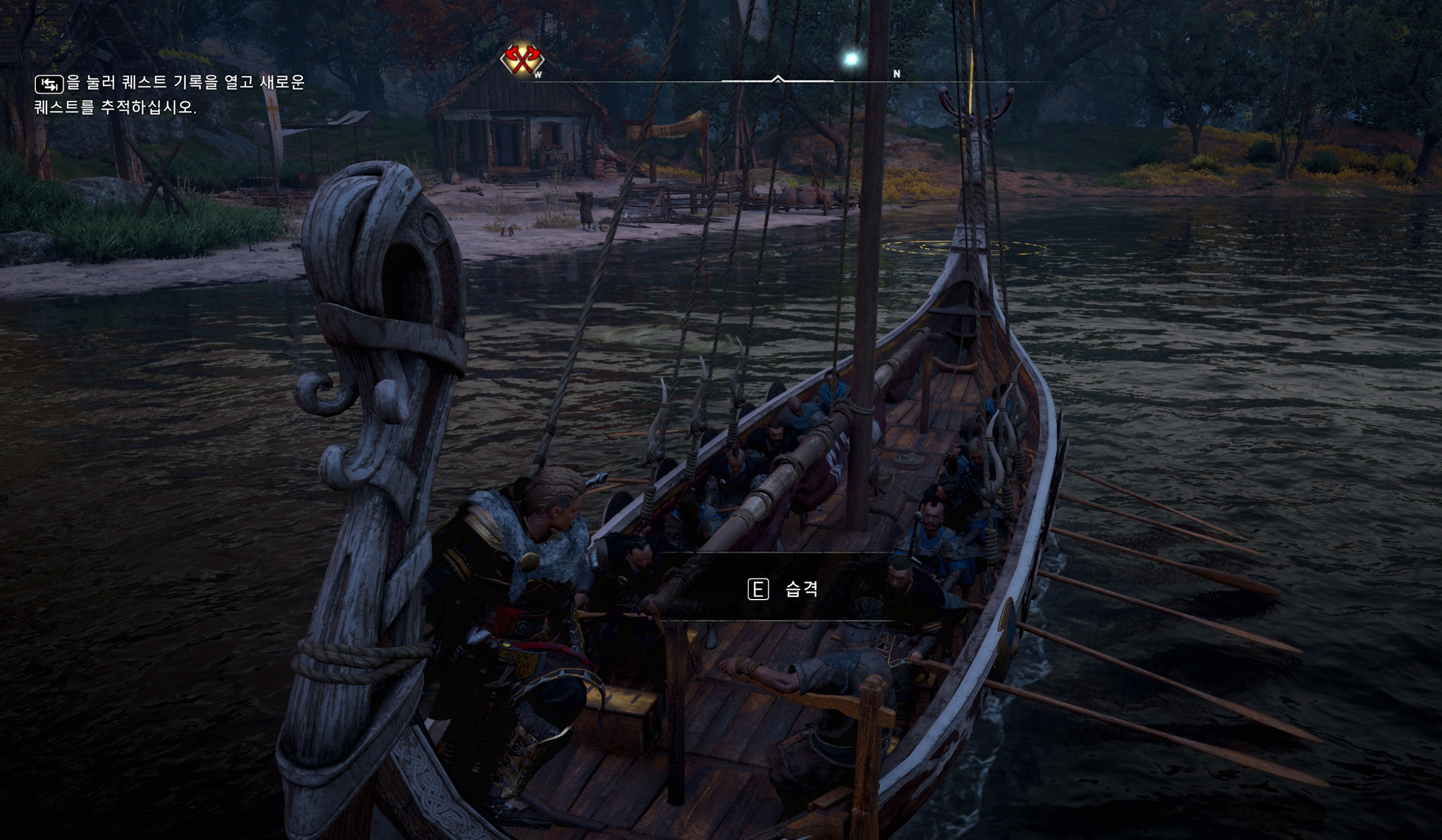 | 마을에서 보트를 타고 해당 지역까지 이동하게 되면 E(습격) 아이콘이 활성화가 됩니다. |