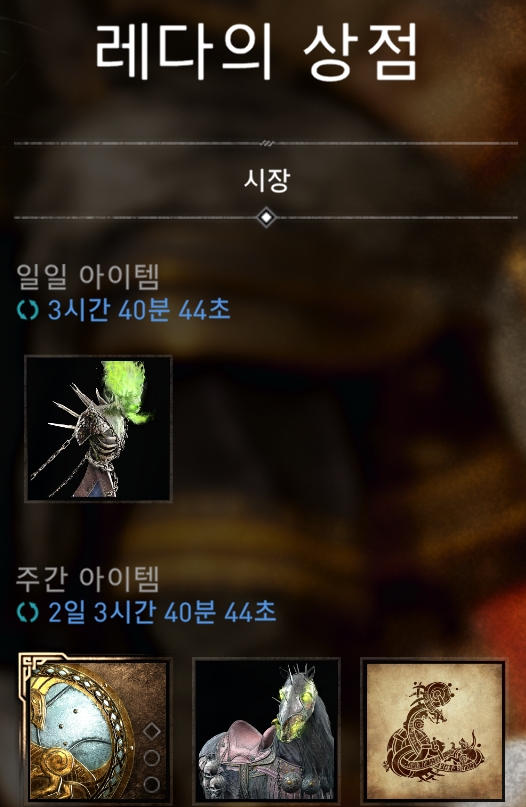 | 주둔지에서 무기 상점 옆에 천개의 눈을 가지고 있는 "레다"에게서 퀘스트를 받으실 수 있습니다. 상점에서는 일일 및 주간 단위로 보상이 변경되며, 아이템마다 책정된 오팔의 갯수가 다릅니다. |