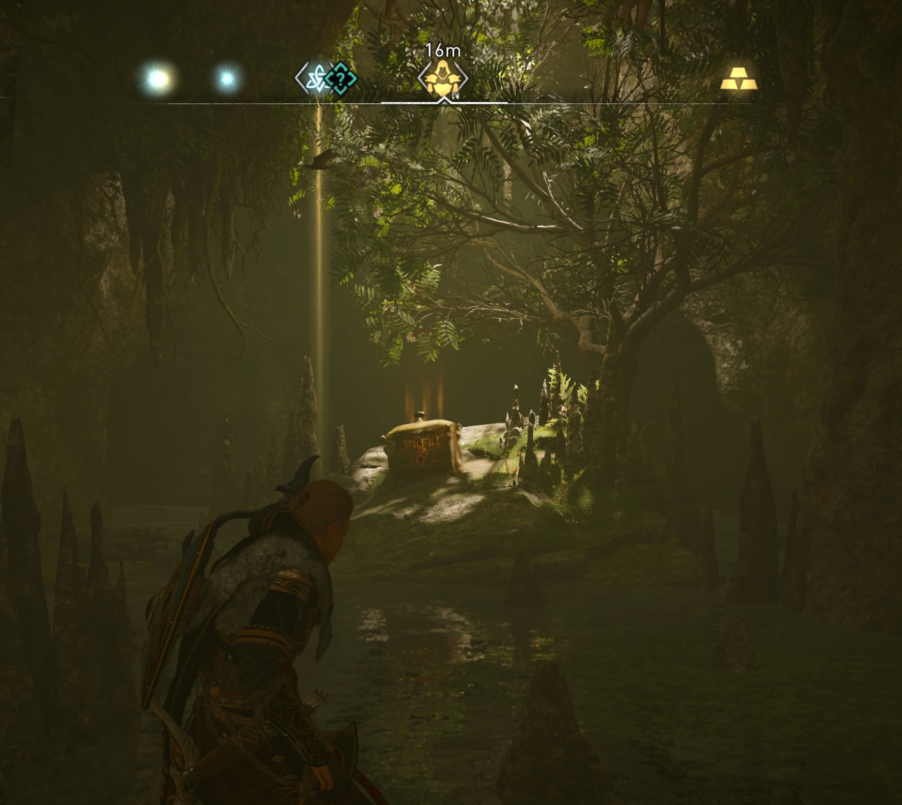어쌔신 크리드 발할라에서는 각 맵에 숨겨진 무기 및 방어구가 존재 합니다. 맵에서 아래와 같은 이미지로 표시된 곳에서 획득 하실 수 있습니다.