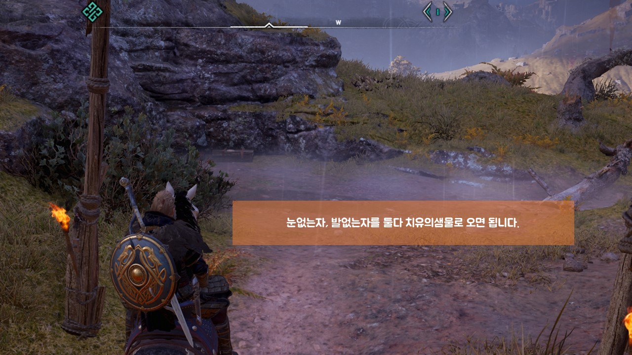| 길 정상에 있는 치유의샘으로 2명의 NPC를 데리고 가면 됩니다. |