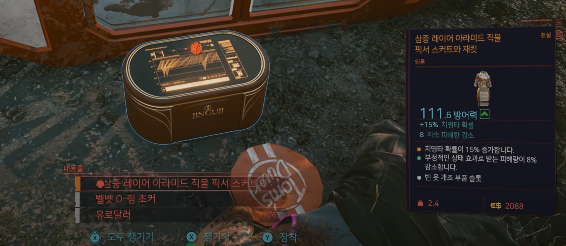 오늘의 리뷰는 사이버펑크2077 전설의상 위치, 스커트와 재킷 입니다.