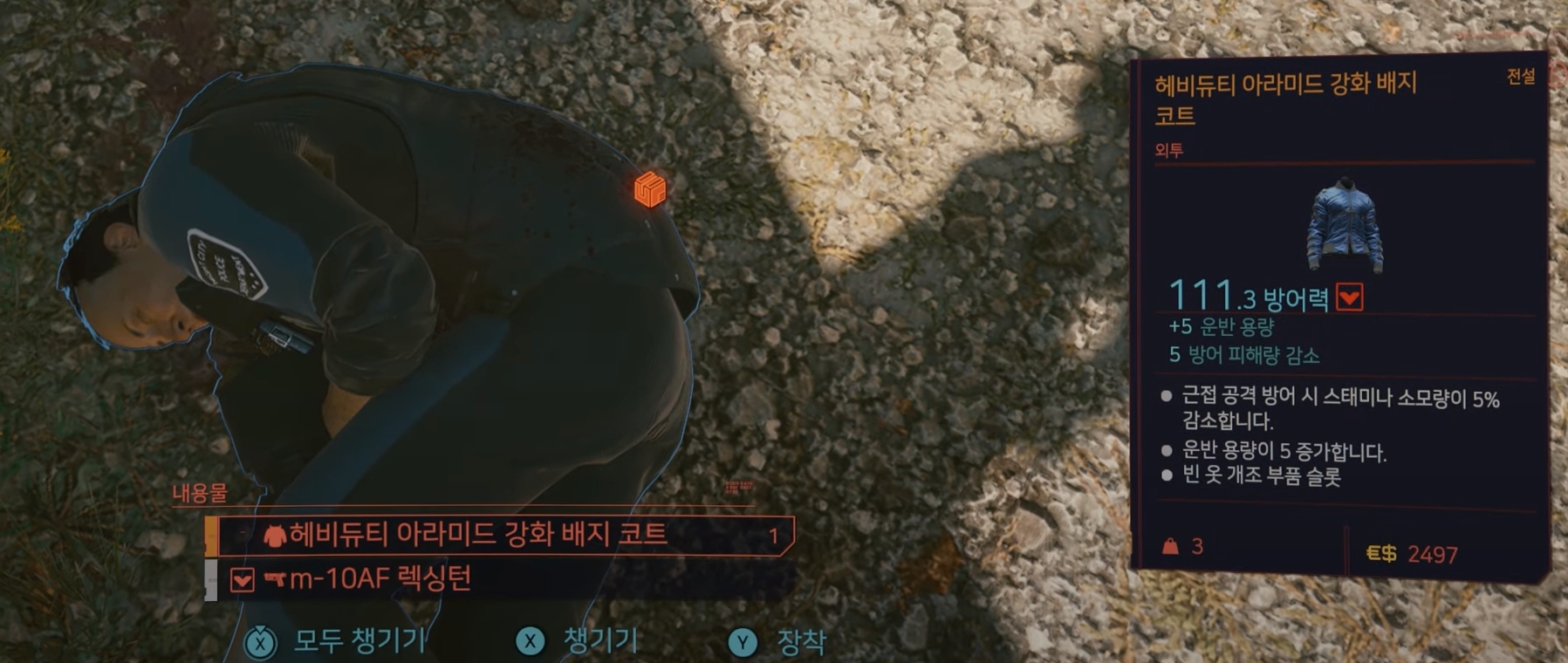 오늘의 리뷰는 사이버펑크2077 전설의상 위치, 강화배지코트 입니다.