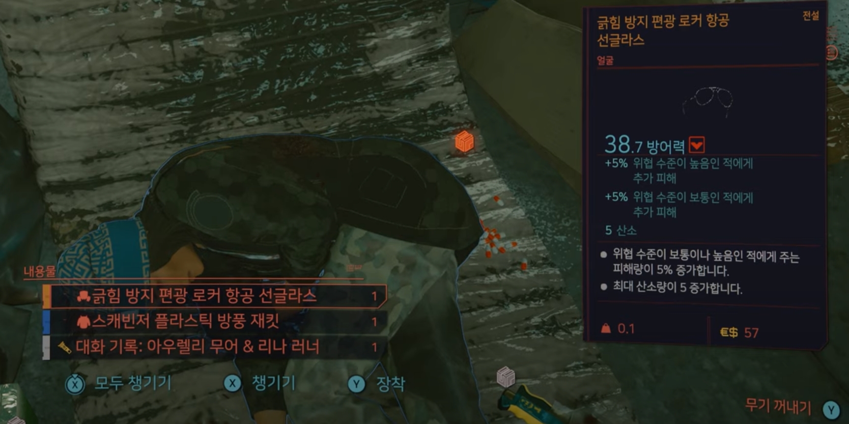 오늘의 리뷰는 사이버펑크2077 전설의상 위치, 긁힘 방지 선글라스 입니다.