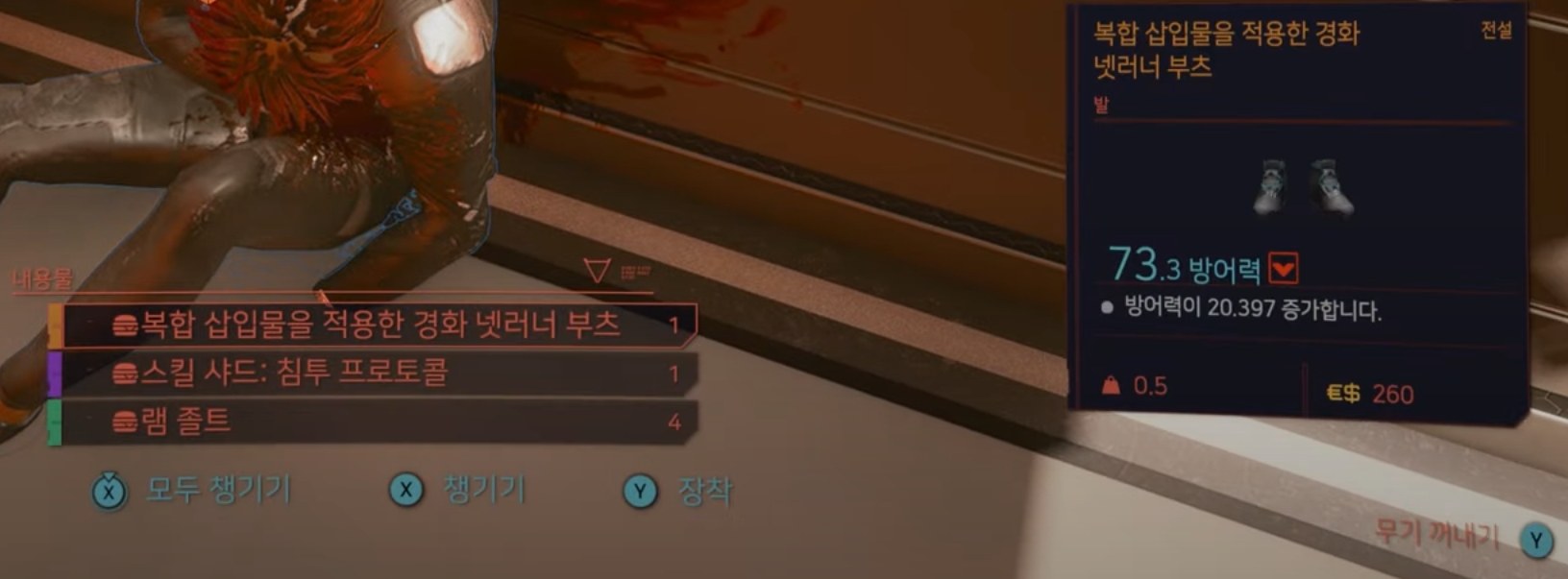 오늘의 리뷰는 사이버펑크2077 전설의상 위치, 넷러너부츠 입니다.