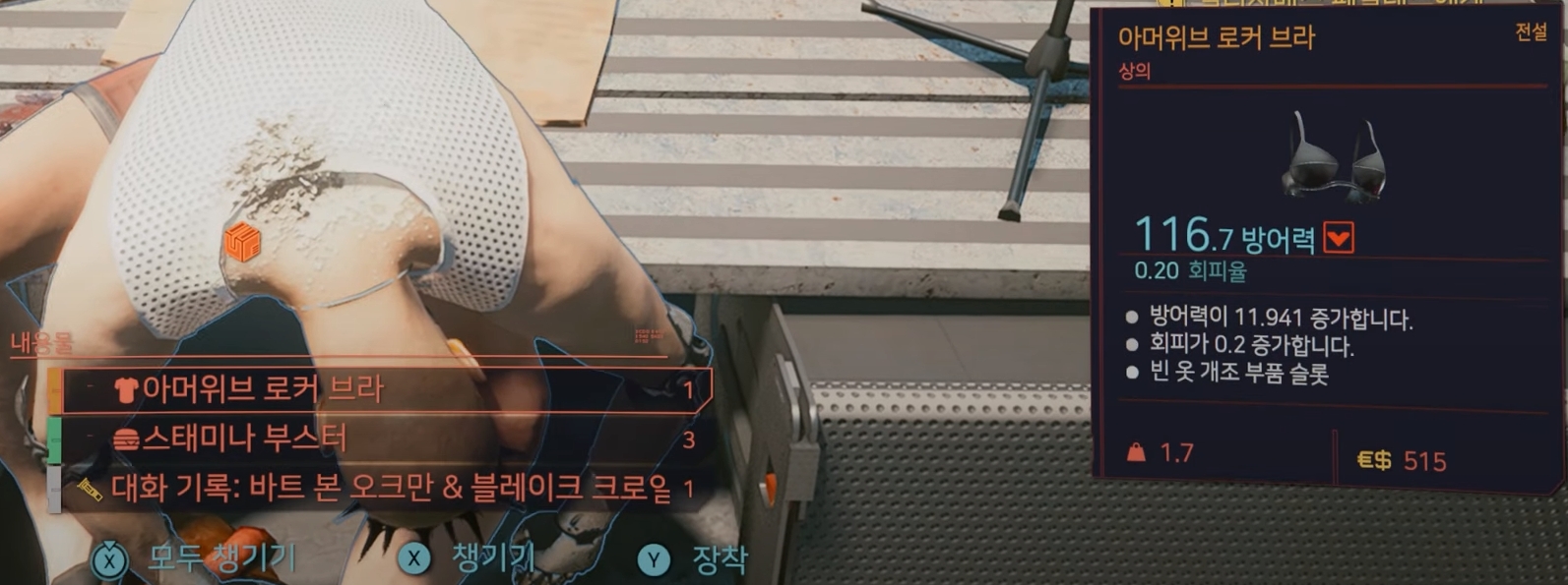 오늘의 리뷰는 사이버펑크2077 전설의상 위치, 로커브라 입니다.