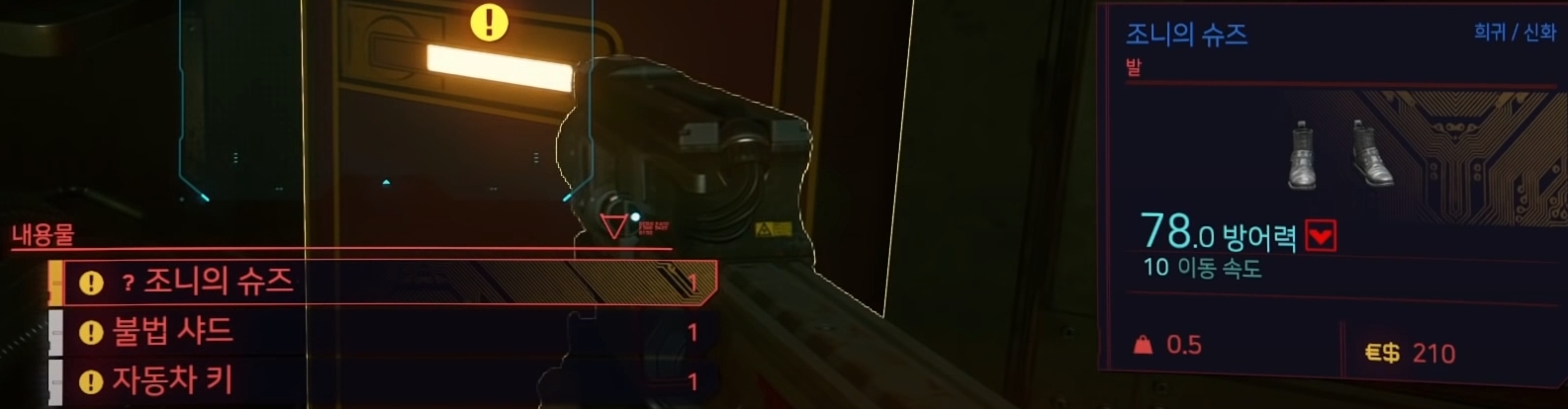| 해당 지역 이동하시면 적대 NPC를 처치해주시고 지하 케비넷에서 조니의 신발을 발견하실 수 있습니다. |