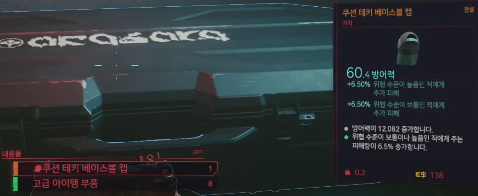 오늘의 리뷰는 사이버펑크2077 전설의상 위치, 베이스볼 캡 입니다.