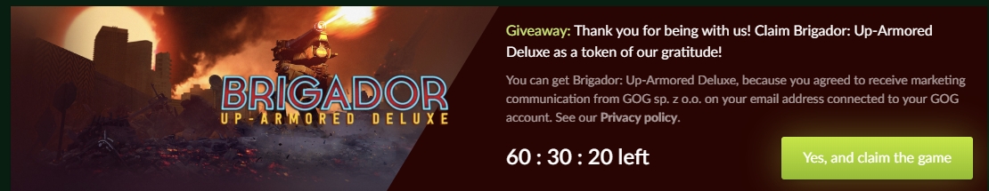 GOG 플랫폼에서 GOG 플랫폼 브리가도르 업 아머드 디럭스 게임을 무료로 배포 중입니다. 해본적은 없는 게임인데, 스팀 평가가 매우 긍정적96%에 달할정도로 괜찮은 게임인것 같습니다.