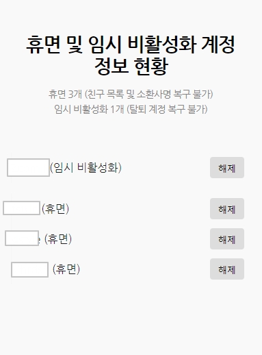 | 임시 비활성화 된 계정을 활성화 시켜주세요. 본인 인증을 하시면 됩니다. |