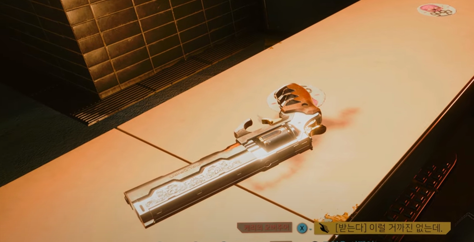 | 조니의 보조 임무를 진행하다보면 조니가 속했던 사무라이 밴드 동료들을 모으는 " 절정의 순간 " 퀘스트로 이어지게 됩니다. 이때 임무 마지막쯤 케리가 자신의 리볼버인 아크엔젤을 선물로 주게된다. |