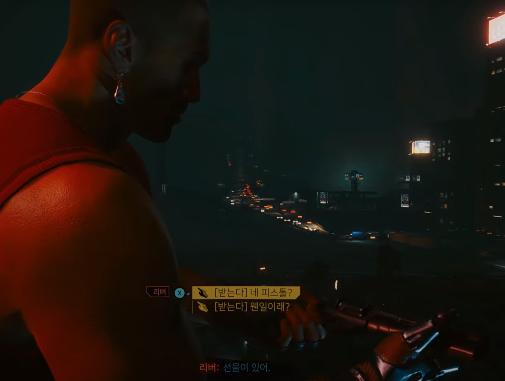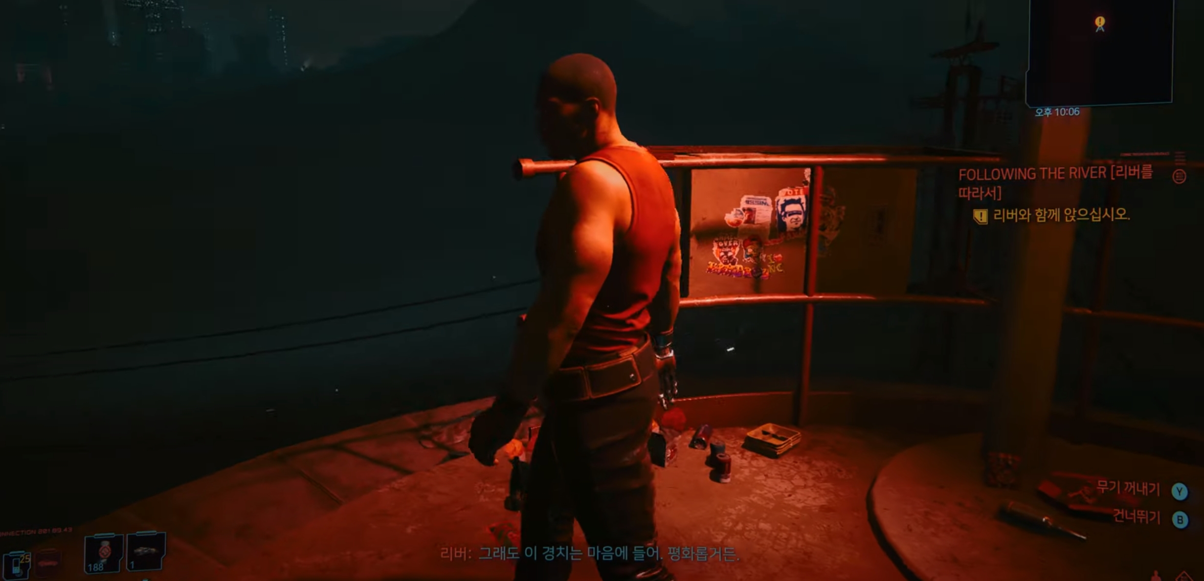 | 보조 퀘스트 " 사냥 " 마치면 리버에게서 연락이 옵니다. 이후 리버와 시간을 보내게되면서 밤에 물탱크쪽에서 이야기를 하다가 리버의 총인 크래시를 얻게 됩니다. |