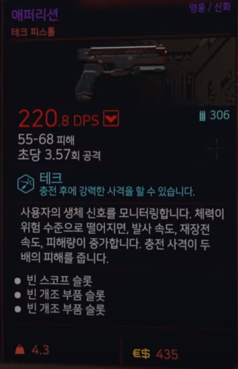 오늘의 리뷰는 사이버펑크2077 신화 무기 획득 방법, 애퍼리션 입니다.