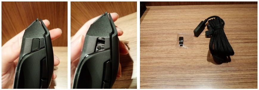 제가 받아봤던 마우스 중 가장 기분 좋게 만드는 Boxing 이었습니다. 일단 정면 오픈형식 타입으로 되어 있으며, 제품 안전 보호 폼으로 감싸져있고, 안에 마우스와 Dock이 1차적으로 폼으로 포장되어 있습니다. 이것을 꺼내고 나면 설명서와 유선 연결할 수 있는 5핀 케이블, 그리고 사이드 그립 여분이 들어있습니다.