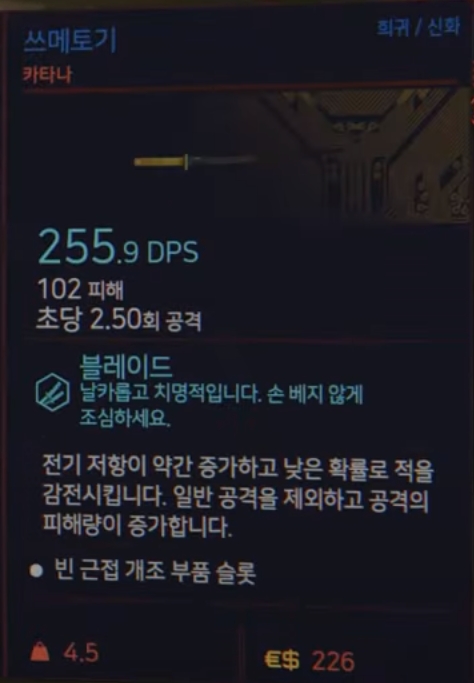 오늘의 리뷰는 사이버펑크2077 신화 무기 획득 방법, 쓰메토기 입니다.