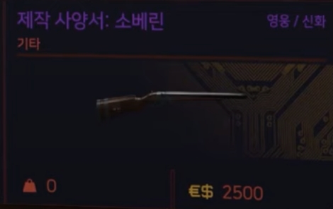 오늘의 리뷰는 사이버펑크2077 신화 무기 획득 방법, 소베린 입니다.