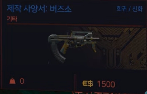 오늘의 리뷰는 사이버펑크2077 신화 무기 획득 방법, 버즈소입니다.