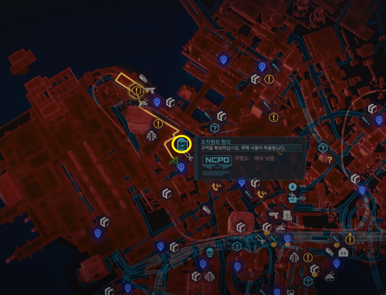 | 해당 지역 조직 범죄 혐의 발부를 받으시고, 조직범죄 리더를 처치하시면 제작서 "버즈소"를 획득하실 수 있습니다. |
