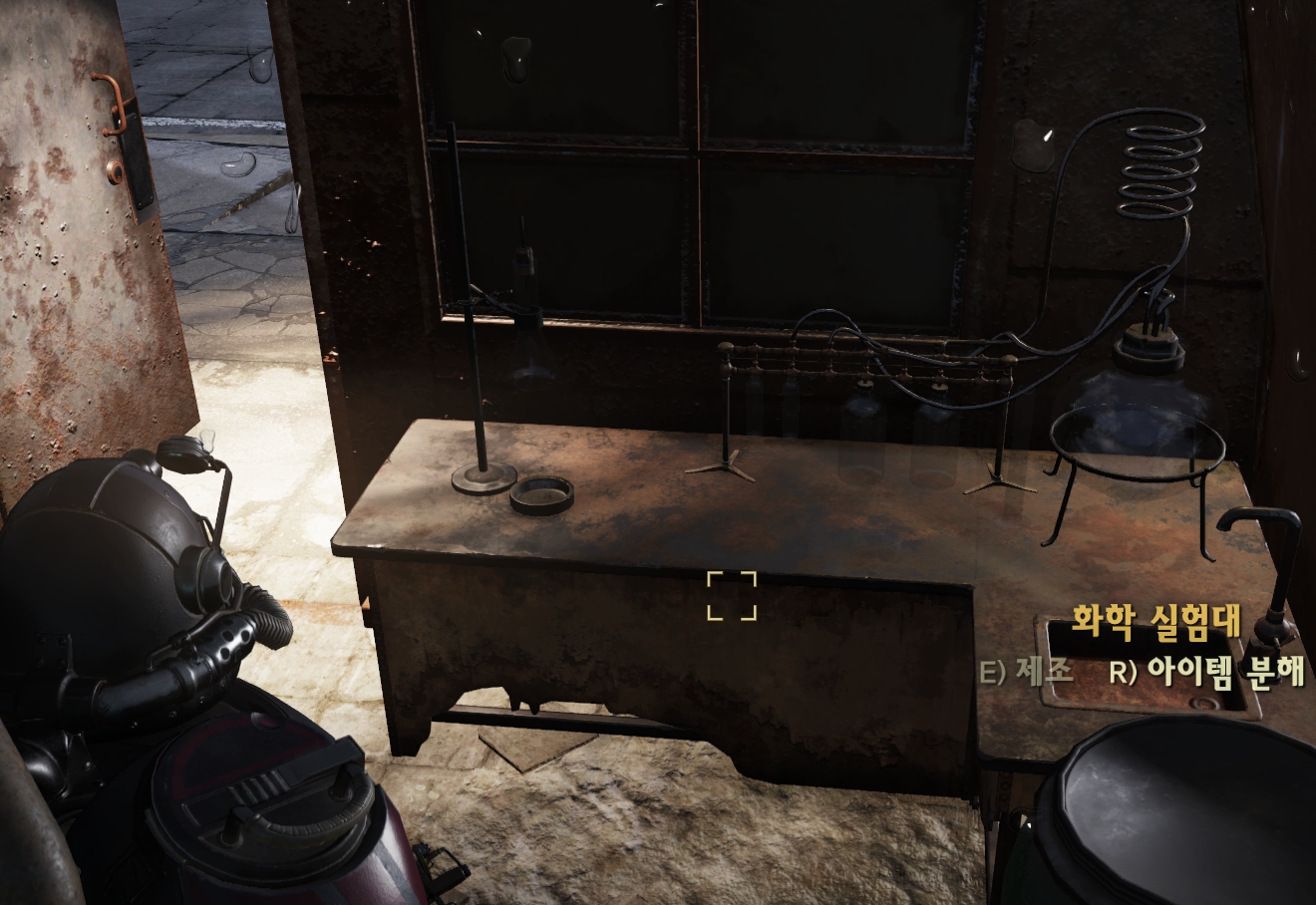 | 이벤트 "충돌경로" 완료한 곳에서 왼쪽에 있는 창고에 들어가시면 화학작업대가 있으니 바로 분해하시면 됩니다. |