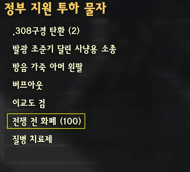 | 모건타운공항에서 "충돌 경로" 라는 이벤트를 하게 되는데, 5라운드까지 스코치드를 처치할 경우 버티봇(드론)이 전쟁 전 화폐 100개를 물자 보급으로 주게됩니다. 해당 아이템을 획득한다고해서 주간퀘스트가 완료되는 것이 아니라 분해를 해주셔야 "완료"가 됩니다. |