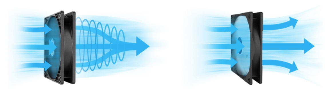 팬을 장착하실때, 앞 뒤 부분을 잘 구분하셔야 합니다. 팬 같은 경우 공기를 흡입, 배출 하는 역활을 하는데 처음 PC 조립시 배출부분과, 흡입 부분이 반대로 장착하시는 경우가 많습니다. 따라서 PC 조립 시 정상적으로 공기 흡입, 배출되는 구조로 장착되었는지 확인을 해주시기 바랍니다.
