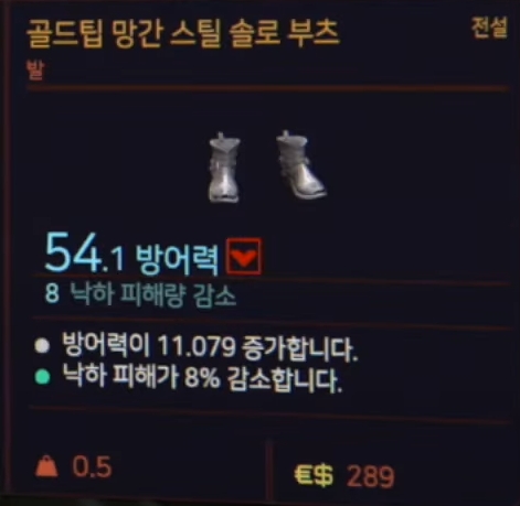오늘의 리뷰는 사이버펑크2077 전설의상 위치, 솔로부츠 입니다.