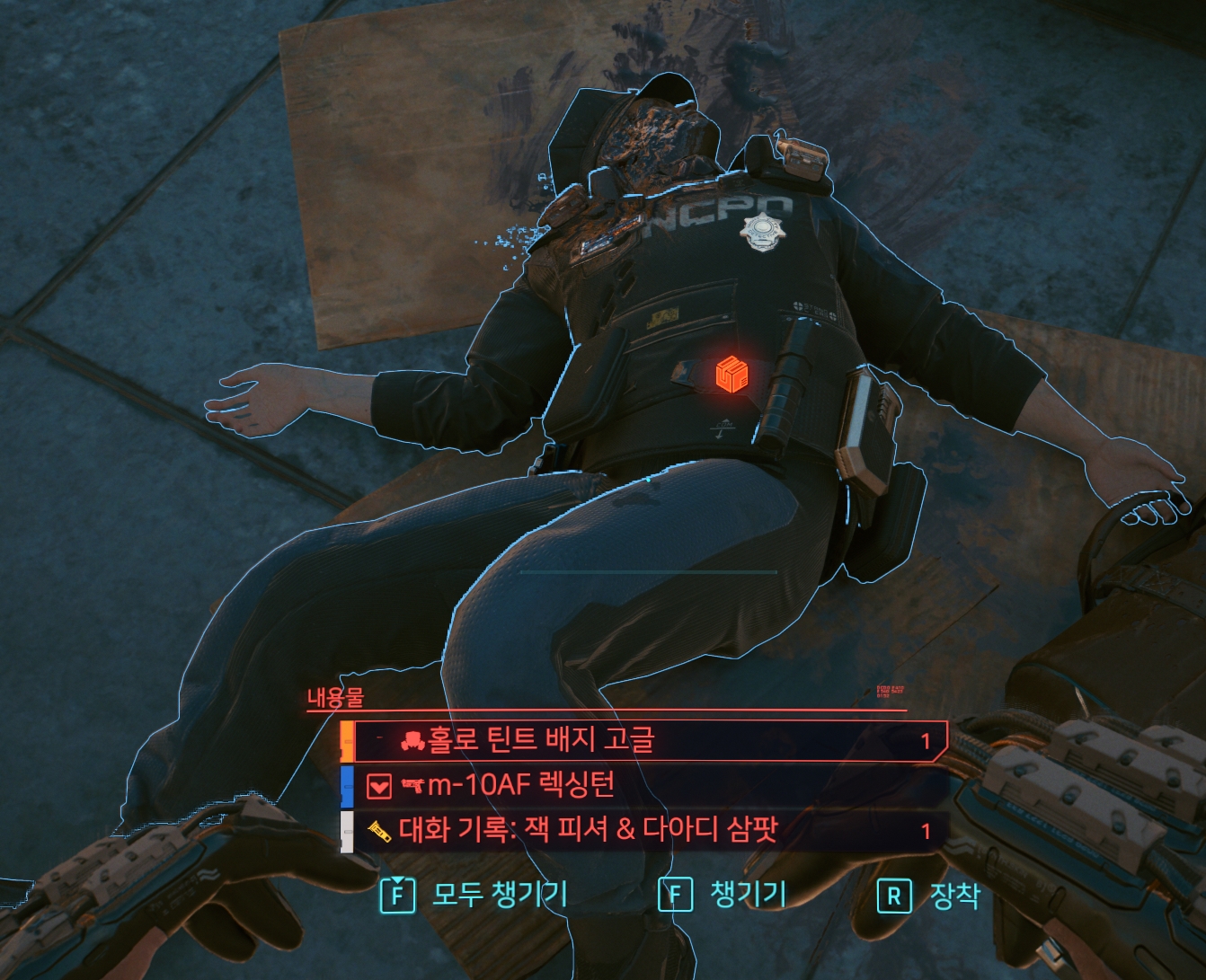 오늘의 리뷰는 사이버펑크2077 전설의상 위치, 배지고글 입니다.