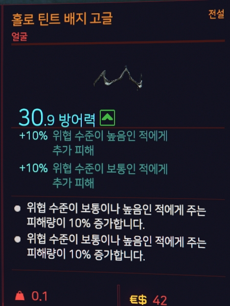사이버펑크 2077 의상 및 방어구 등급은 아래와 같습니다.