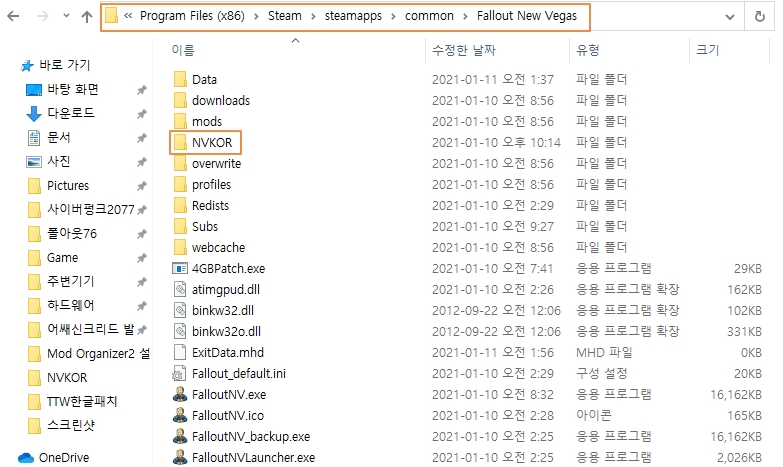 | Mod organizer2 를 사용하여 넥서스모드에서 다운 받으신 모드를 적용 시켜주세요. 적용시키는 방법을 모르신다면 아래 "더보기"를 클릭해주세요 |