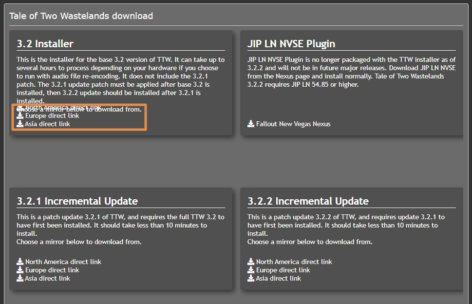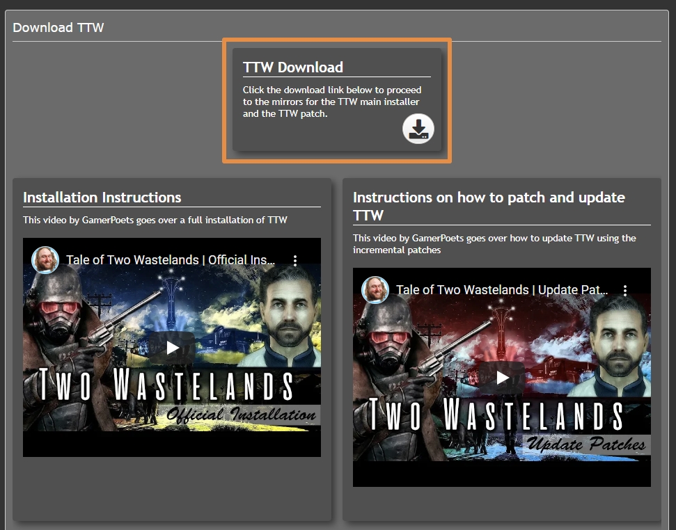 Click the download link below to proceed to the mirrors for the TTW main installer and the TTW patch.