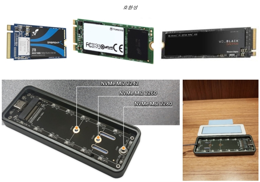 PNC PARTNER M.2 SSD Type-C RGB는 MVMe M.2 2242, 2260, 2280 폭넓은 호환성을 지원합니다.