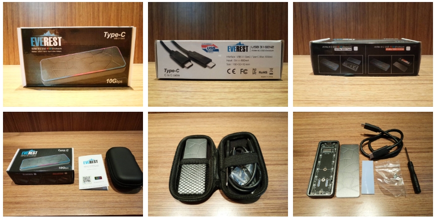 기본 상품 구성은 M.2 외장 케이스, Type-C 케이블, 설명서, 서멀패드, 드라이버로 구성이 되어 있습니다.