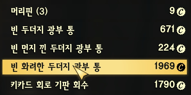 | 보물상자통을 획득하고 있는 전설급 두더지 광부를 처치할 경우 랜덤으로 통을 획득하게 됩니다. |