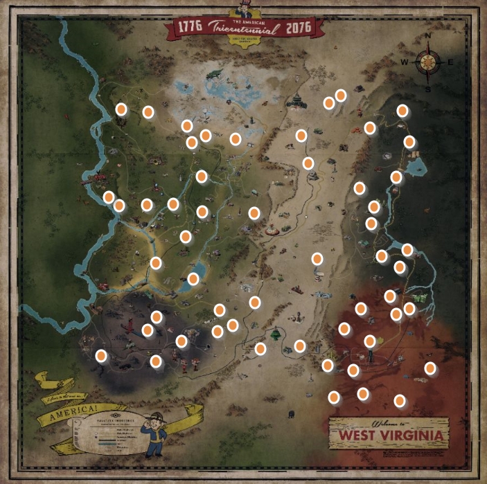 | 각 맵마다 다양한 이벤트와 랜덤 인카운트가 진행됩니다. 다양한 파벌같의 대립이나 폴아웃76 세계관에서의 이벤트를 즐기 실 수 있습니다. 특히 확률적으로 크리처가 등장도 하니 가끔 게임하시다가 해당 지역에 가셔서 이러한 것도 기획에 의거하여 게임을 만들었구나~ 하는 생각을 하신다면 보다 재미있는 폴아웃76이 되실 것 같습니다. |