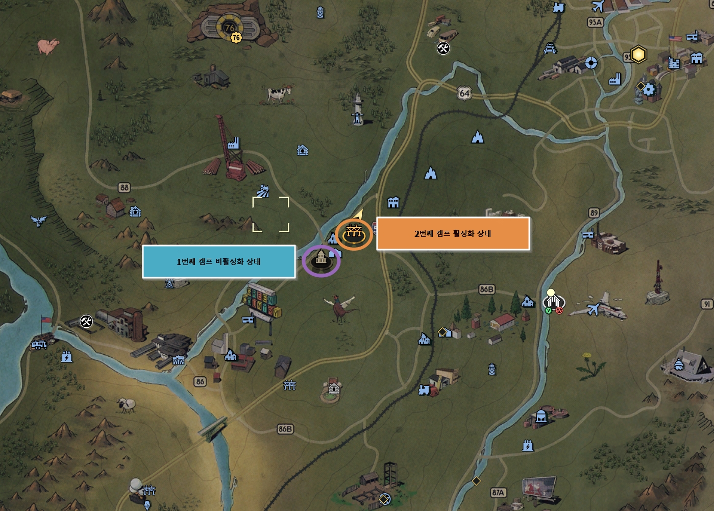 | 에팔레치아에 CAMP를 여러곳에 지으실 수 있습니다. 유기적으로 캠프를 설정하세요. 1. 생성된 CAMP는 슬롯 타입으로 저장되며, M(맵)의 왼쪽 상단에 표시가 됩니다. 또한 표시에서 캠프 설정이 가능합니다. 1) 캐릭터마다 2개의 슬롯을 설정할 수 있습니다. 2) 캠프 슬롯 이름을 설정할 수 있으며, 아이콘을 선택하여 활성화 시킬 수 있습니다. 2. 한개의 캠프만 활성화가 되며, 비활성화된 캠프는 저장된 상태로 유지됩니다. 1) 활성화된 캠프는 노란색 아이콘으로 표시 됩니다. 2) 활성화된 캠프는 공개 지도에서 아이콘이 활성화되며, 다른 플레이어에게는 흰색으로 표시 됩니다. - 비활성화 된 캠프는 플레이어에게만 확인이 됩니다. 3) 다른 캠프를 활성화 시키려면 M(맵)을 눌러서 활성화 버튼을 누르면 됩니다. 기존 캠프는 비활성화 됩니다. 3. 캠프가 여러곳 저장이 되다보니 밴딩머신(판매상점) 또한 변경됩니다. 1) 모든 캠프 밴딩머신(판매상점)은 공통으로 아이템이 판매 유지 됩니다. - A 캠프, B 캠프 모두 동일한 판매 리스트가 노출됩니다. 2) 밴딩머신 아이템 등록 한도가 늘어나게 됩니다. |