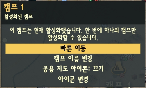 | 빠른이동 | 캠프 이름 변경 | 공용 지도 아이콘 | 아이콘 변경 |