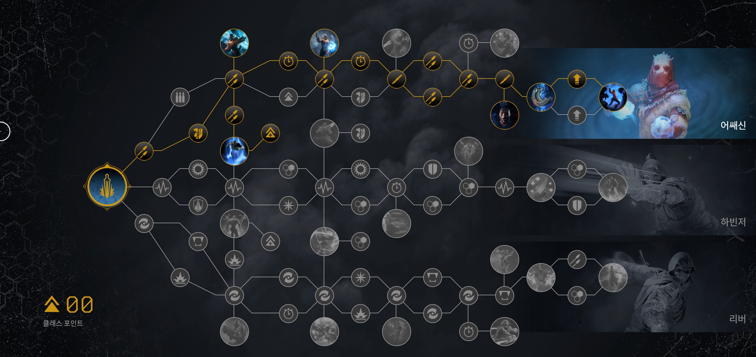 | 부메랑 칼날(경로 반복) | 고통(표식 시간 추가) | 죽음의 춤(스킬 쿨다운 20%) |