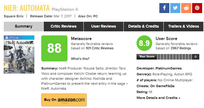 오늘의 리뷰는 NieR Automata Review, 니어 오토마타 리뷰, 플레이타임 입니다.