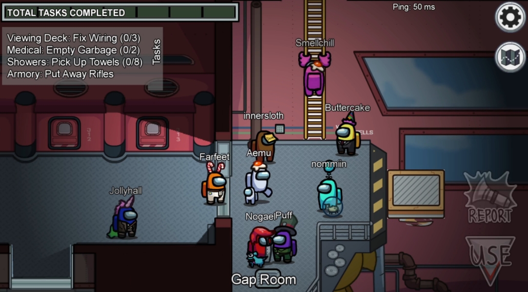 | Among Us 크루원의 임무: 크루원이 승리하려면 모든 임무를 완료해야 합니다. 임포스터를 조심하세요! 시체를 발견하면 신고하고 긴급회의를 열어 투표로 임포스터를 우주선에서 쫓아내세요. 옳은 선택을 내릴 수 있길 바랍니다! 임포스터의 임무: 몰래 숨어다니며 혼란을 일으키고, 무고한 사람에게 누명을 씌우세요! 모든 크루원을 처치하세요. 방해 공작을 능수능란하게 활용하세요. 커스터마이징: 원하는 플레이 방식을 선택하세요! 더 많은 임포스터와 임무를 추가하고, 시야 등을 낮출 수 있습니다. 원하는 색상, 스킨, 모자로 개성을 표현하세요. 크로스 플랫폼: PC, Android, iOS 등 플랫폼에 상관없이 친구와 플레이하세요! |